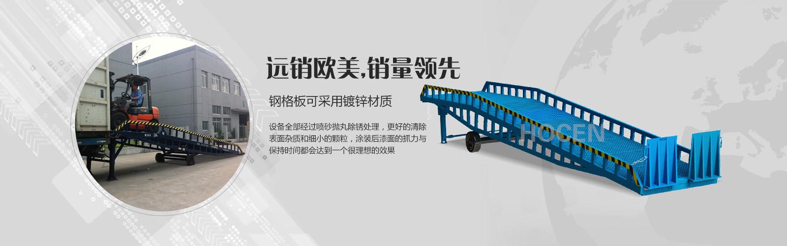 公司長期致力于鋁合金系列升降平臺、錳鋼系列液壓升降平臺和各種登車橋的研發(fā)生產(chǎn)。經(jīng)過不懈的研究探索,積累了豐富的設(shè)計(jì)、制造經(jīng)驗(yàn),其中我們也不斷學(xué)習(xí)國外先進(jìn)技術(shù)和設(shè)計(jì)方案,讓產(chǎn)品在工藝上和外觀上更精益求精。公司擁有從原材料處理、加工、噴涂的成套制造和檢測設(shè)備,嚴(yán)格的生產(chǎn)管理、豐富的經(jīng)驗(yàn).....